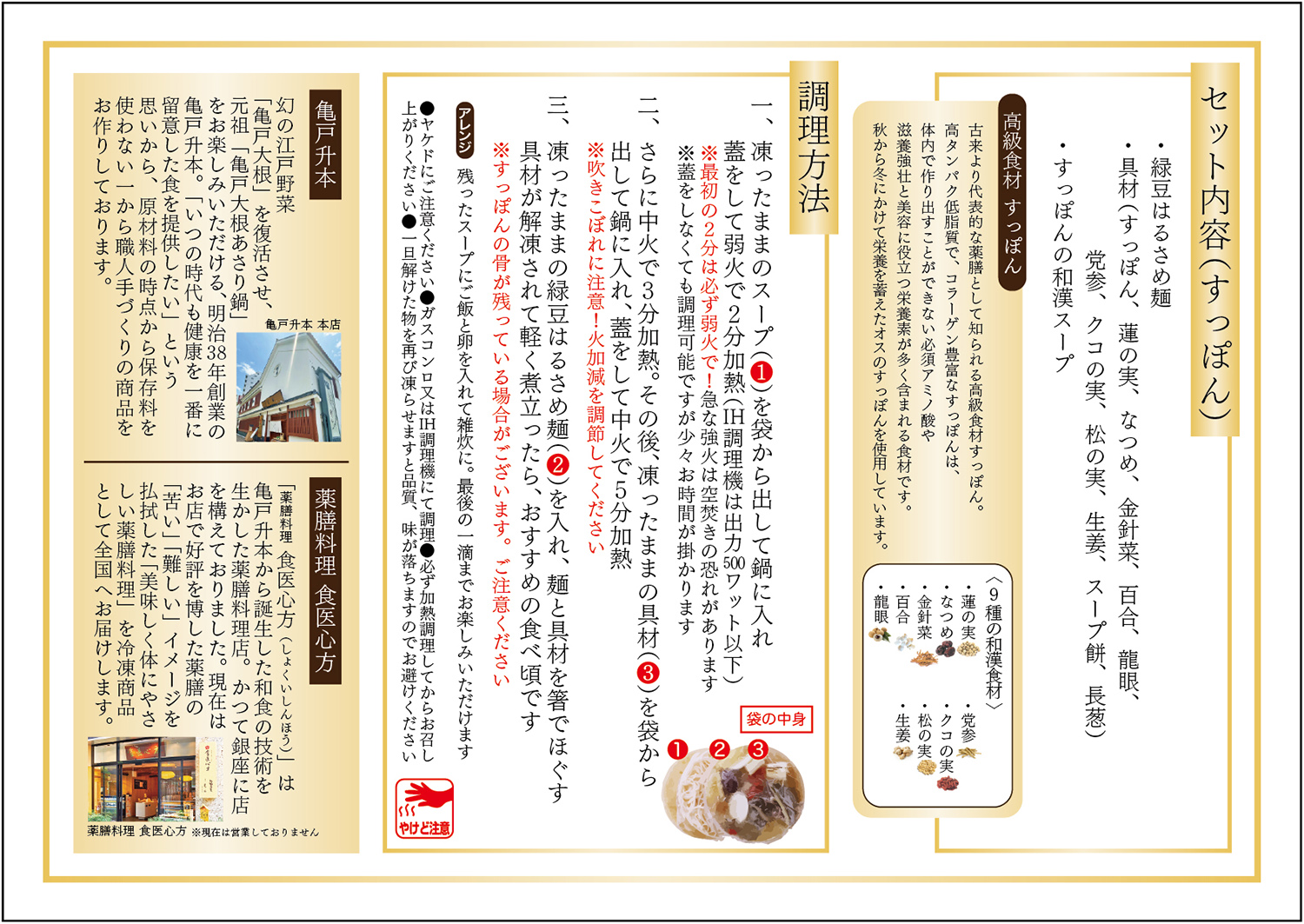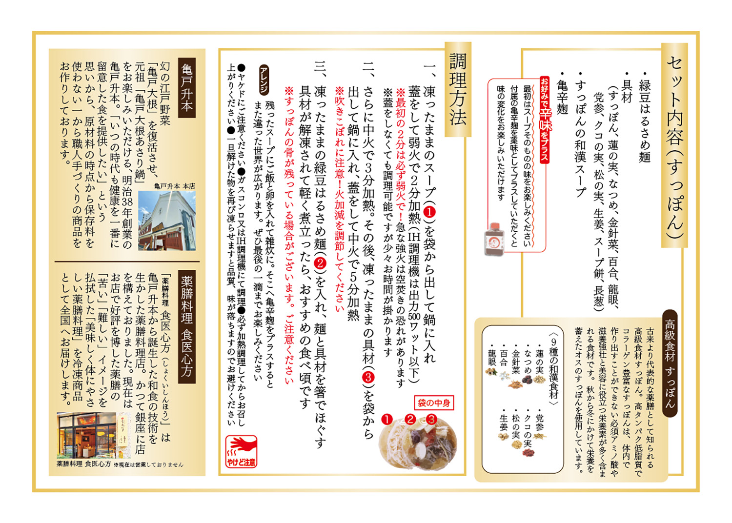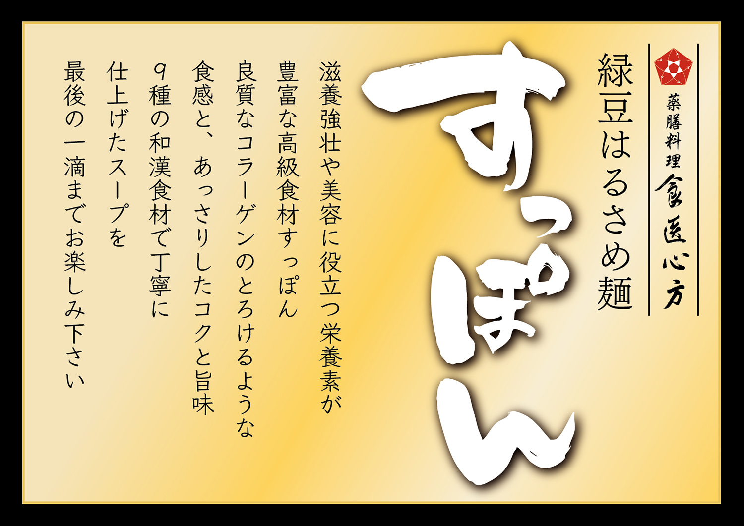 9種の和漢食材で丁寧に仕上げたスープを最後の一滴までお楽しみ下さい。